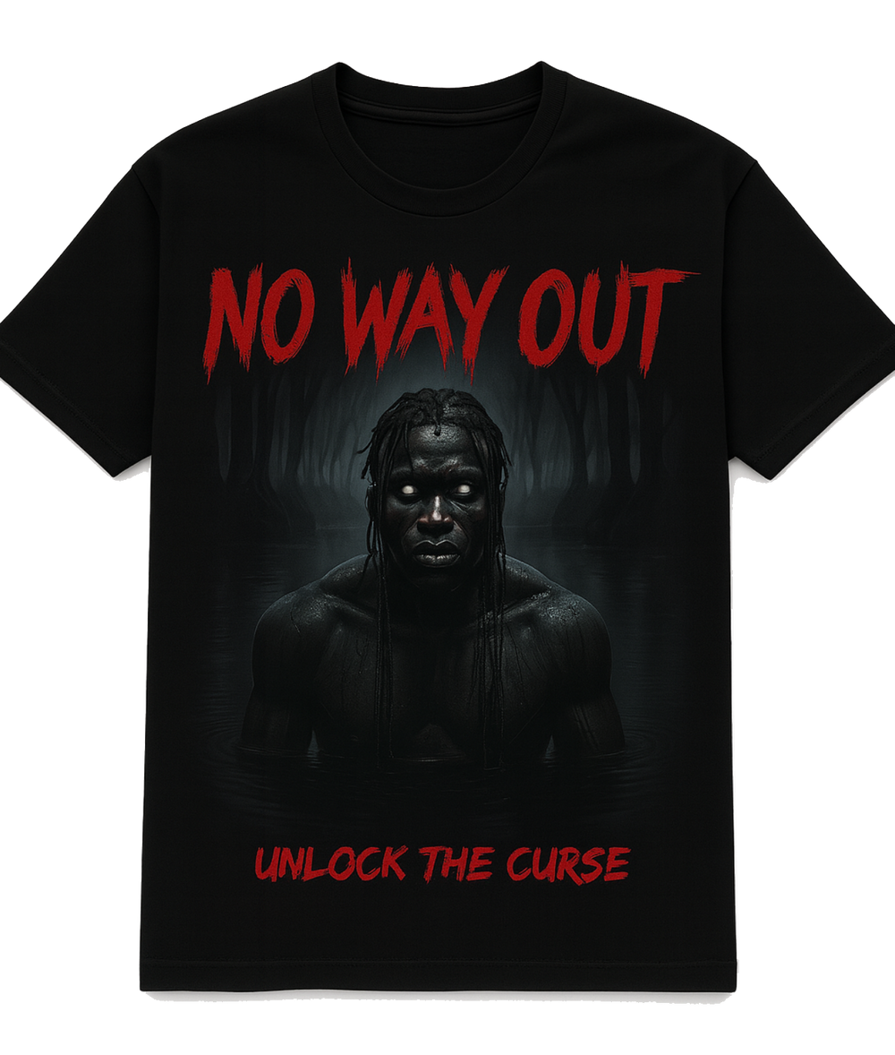 Another collector’s essential. Featuring the eerie swamp spirit artwork with glowing white eyes, this tee captures the haunting presence from the film’s universe.